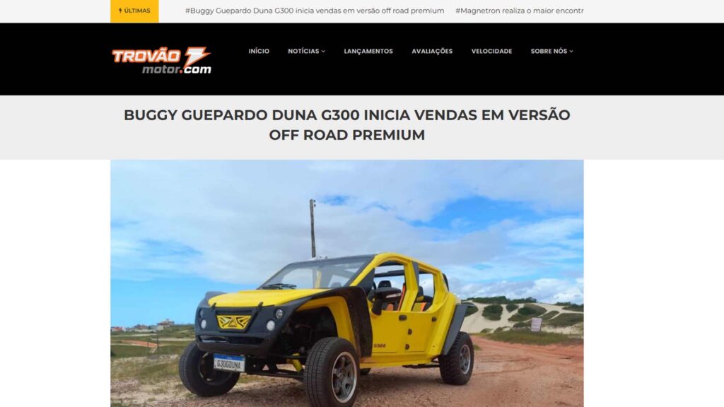 O Buggy Guepardo Duna G300 marca uma nova fase no segmento off road brasileiro. Ainda no início das operações, já teve sua primeira unidade entregue em Fernando de Noronha. Agora, o modelo entra oficialmente em pré-venda nacional e inicia testes com compradores interessados.